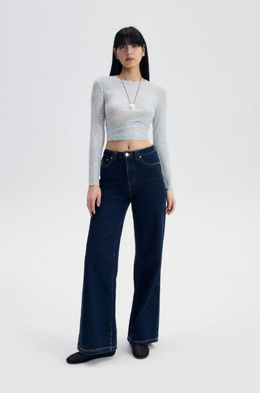 Long-sleeved second skin top in mesh with MM monogram print. Round neck and see-through effect without lining. Available in black, strawberry ice, and metal grey.