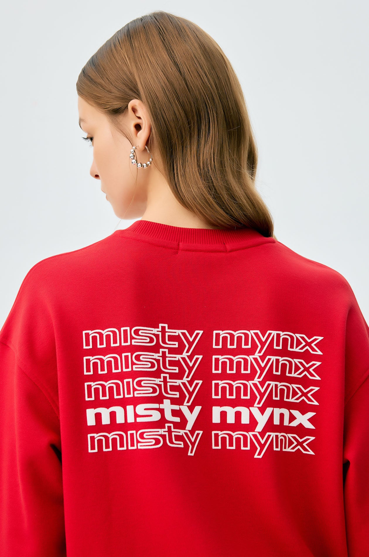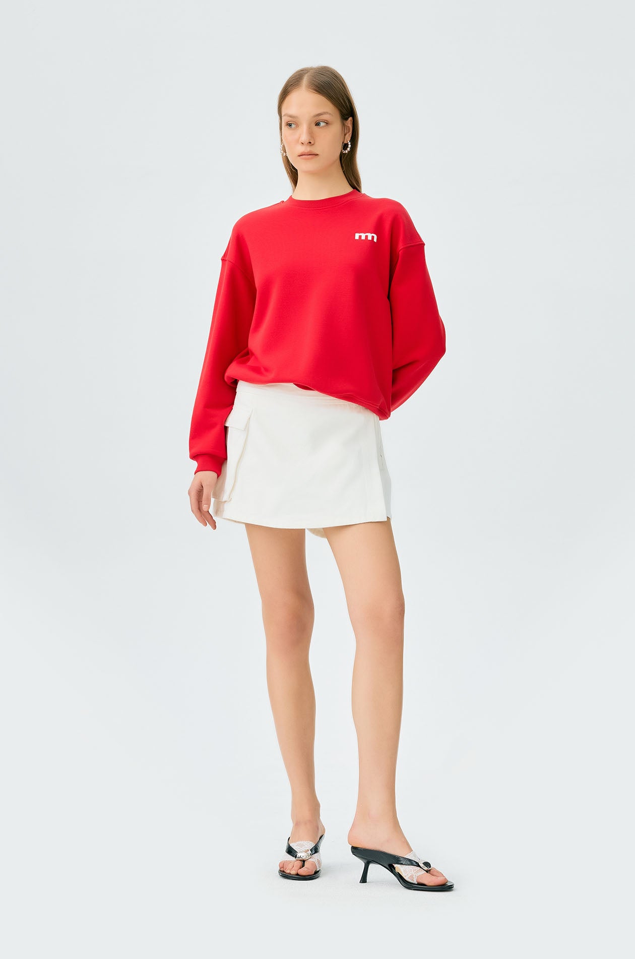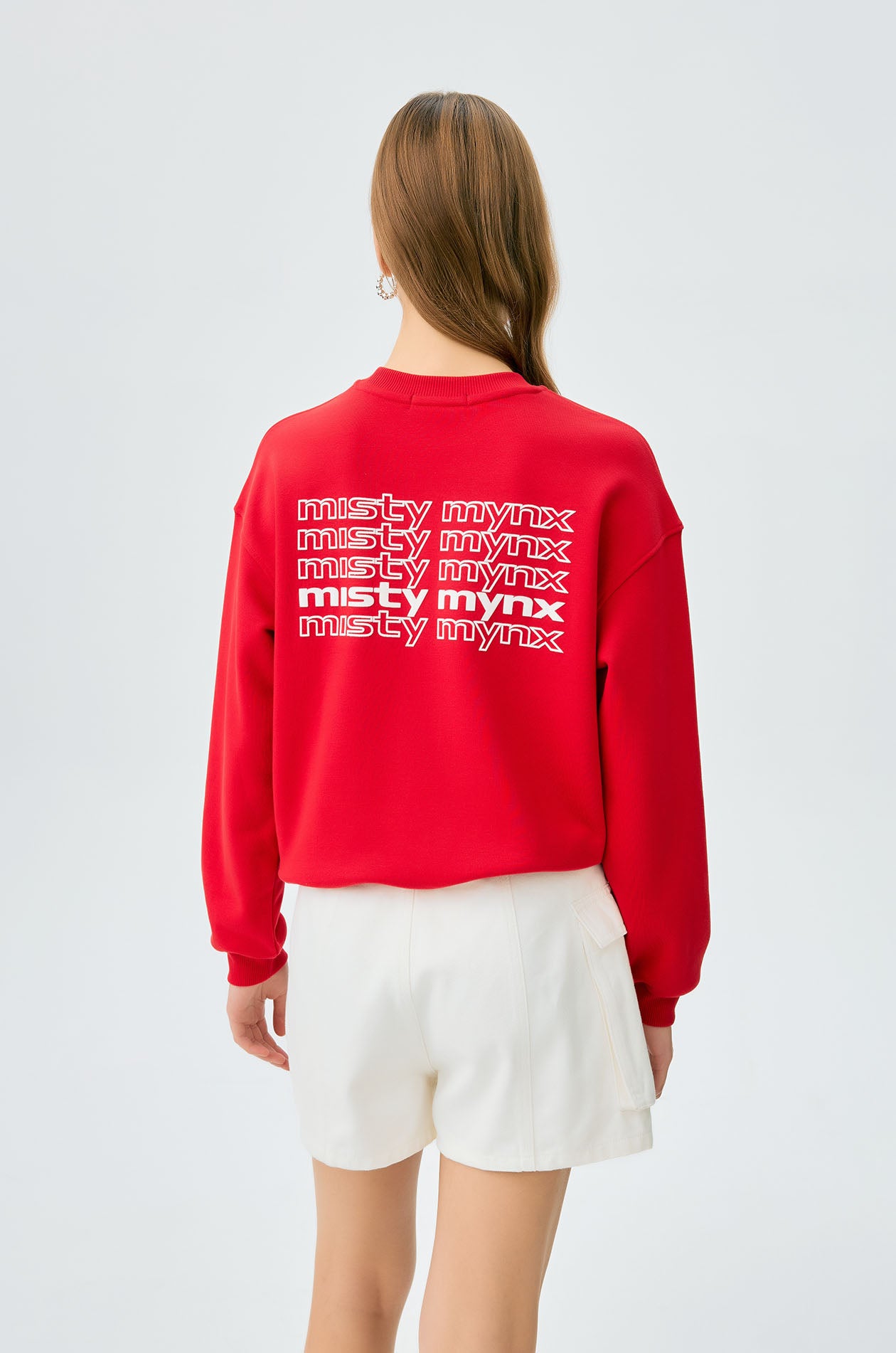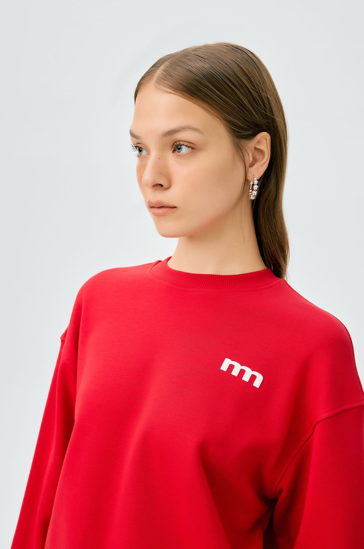Long-sleeved sweater in French terry. Oversized fit with monogram logo a the chest and lettering logo at the back. Ribbed round neck and cuffs. Available in red.