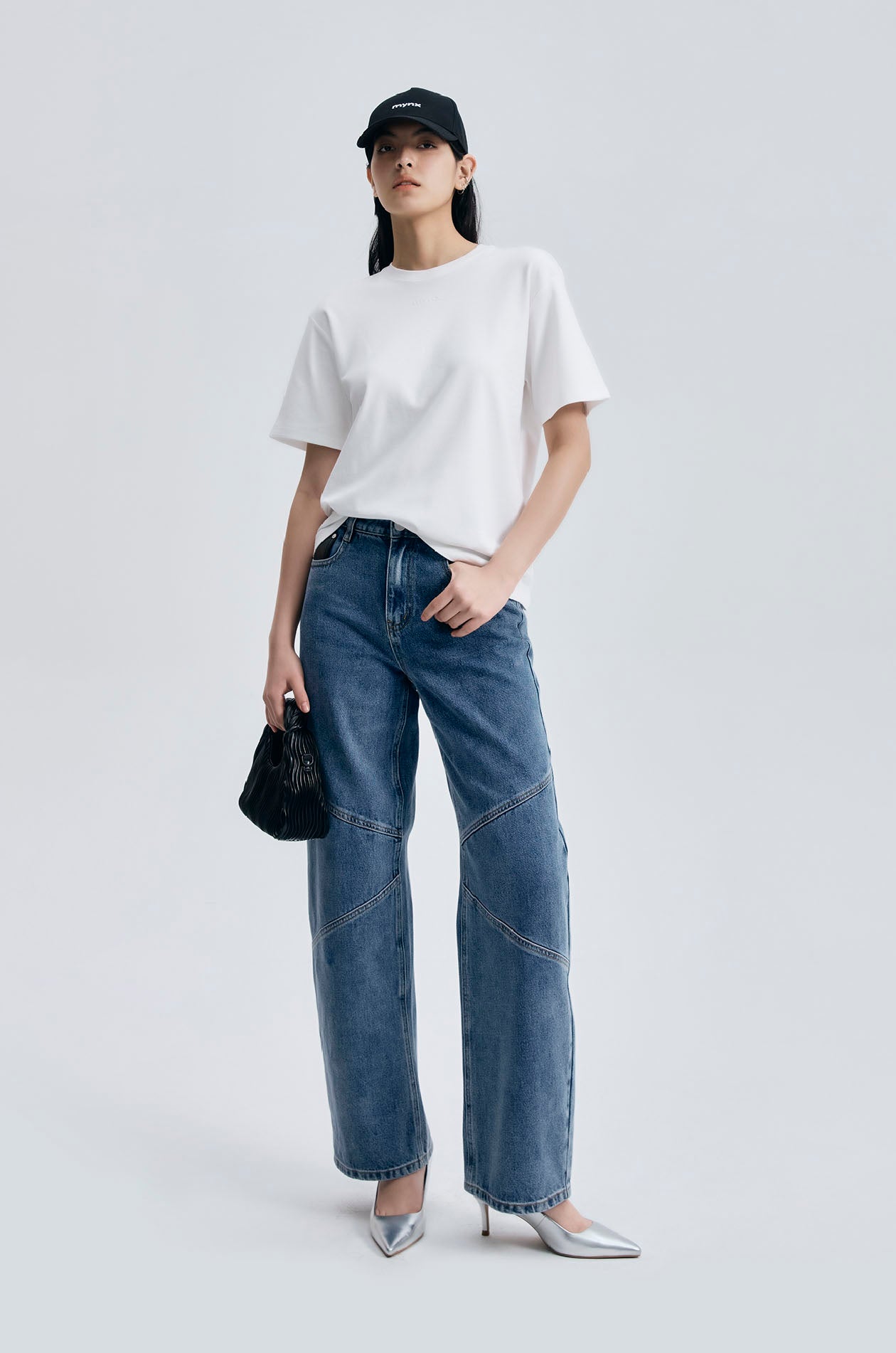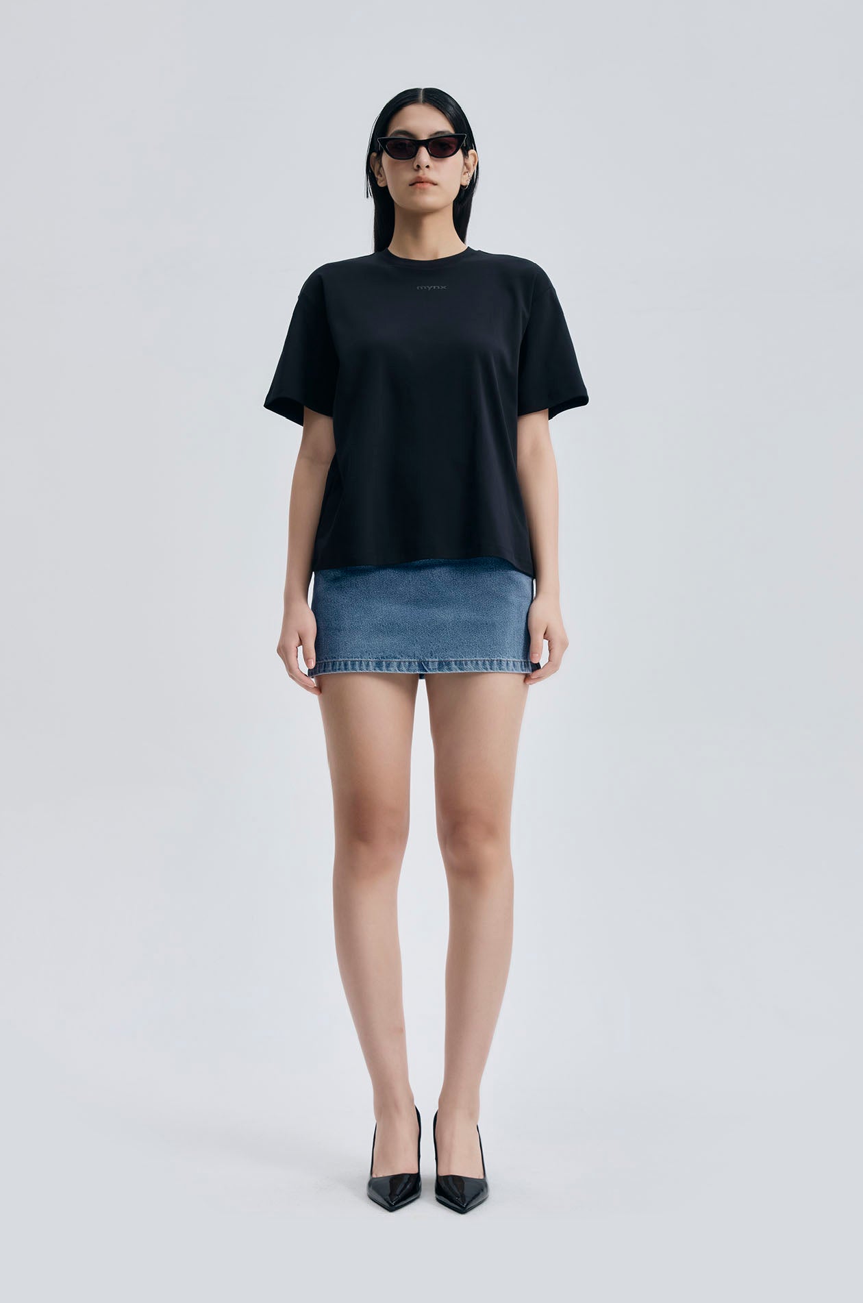Short-sleeved boxy T-shirt in jersey fabric. Crafted from 100% premium cotton for a soft touch and enhanced breathability. Features a round neckline and a minimal lettering logo on the front. Available in white, black, top-dyed grey, and strawberry ice.