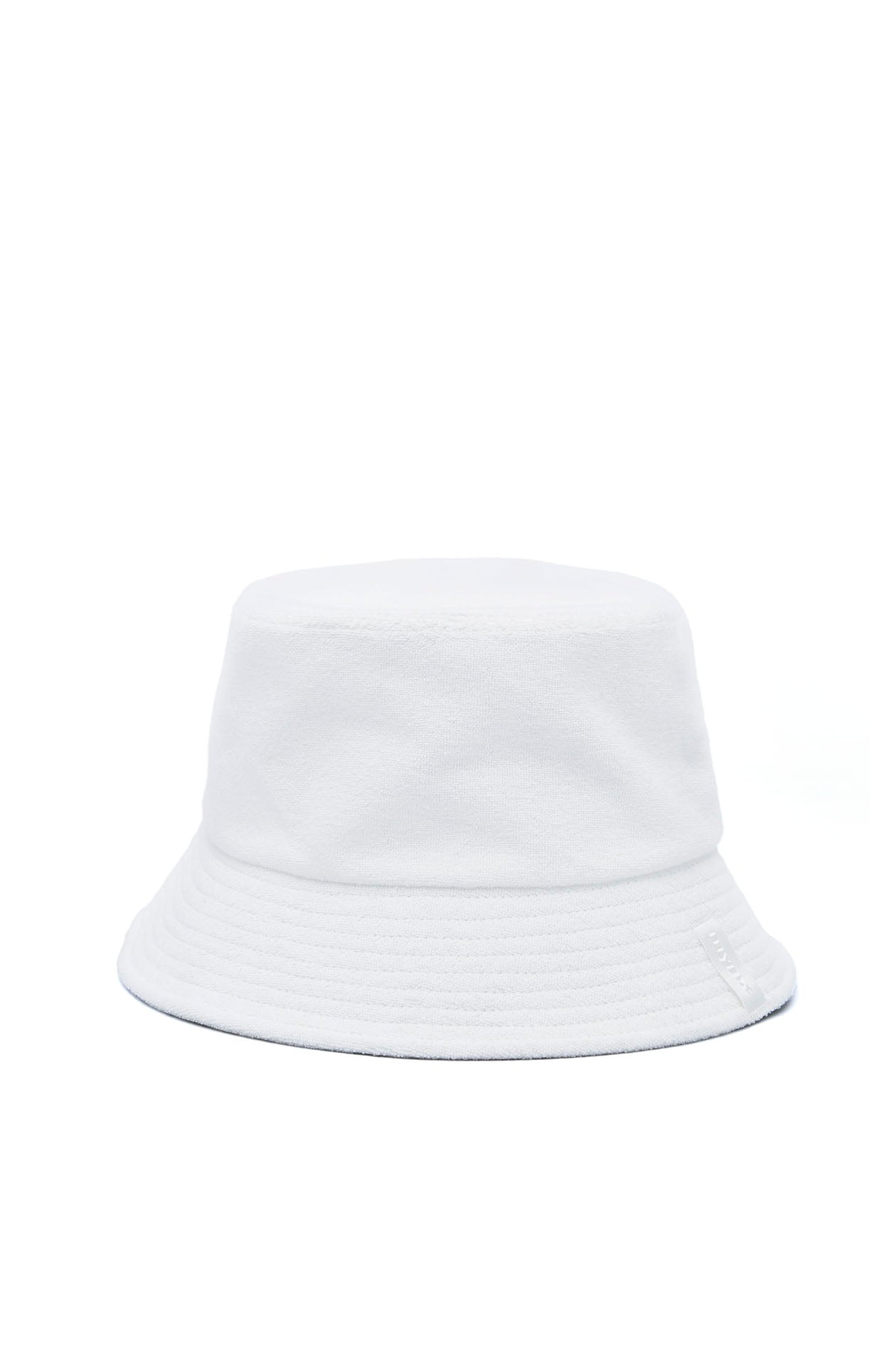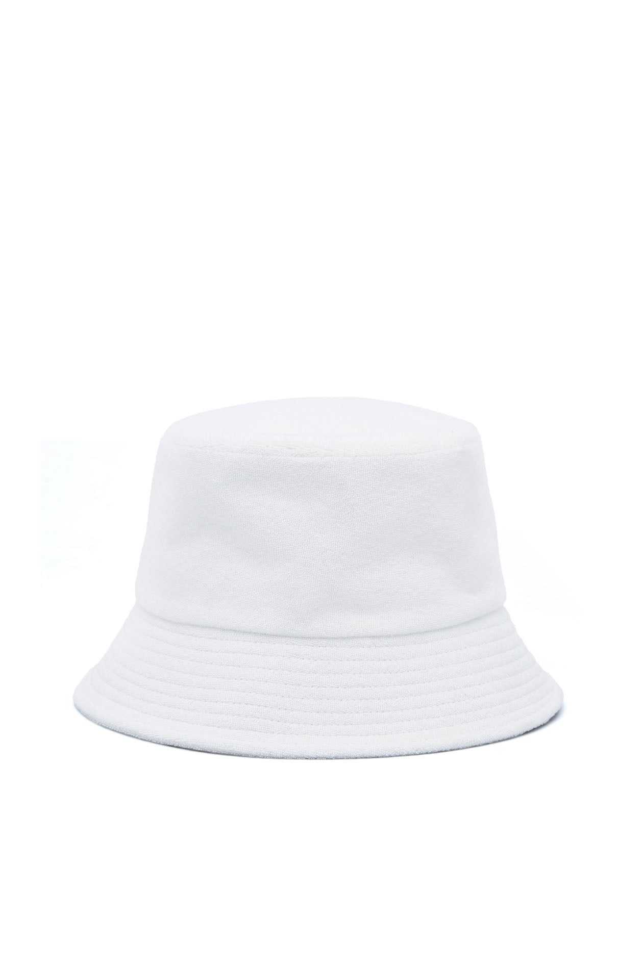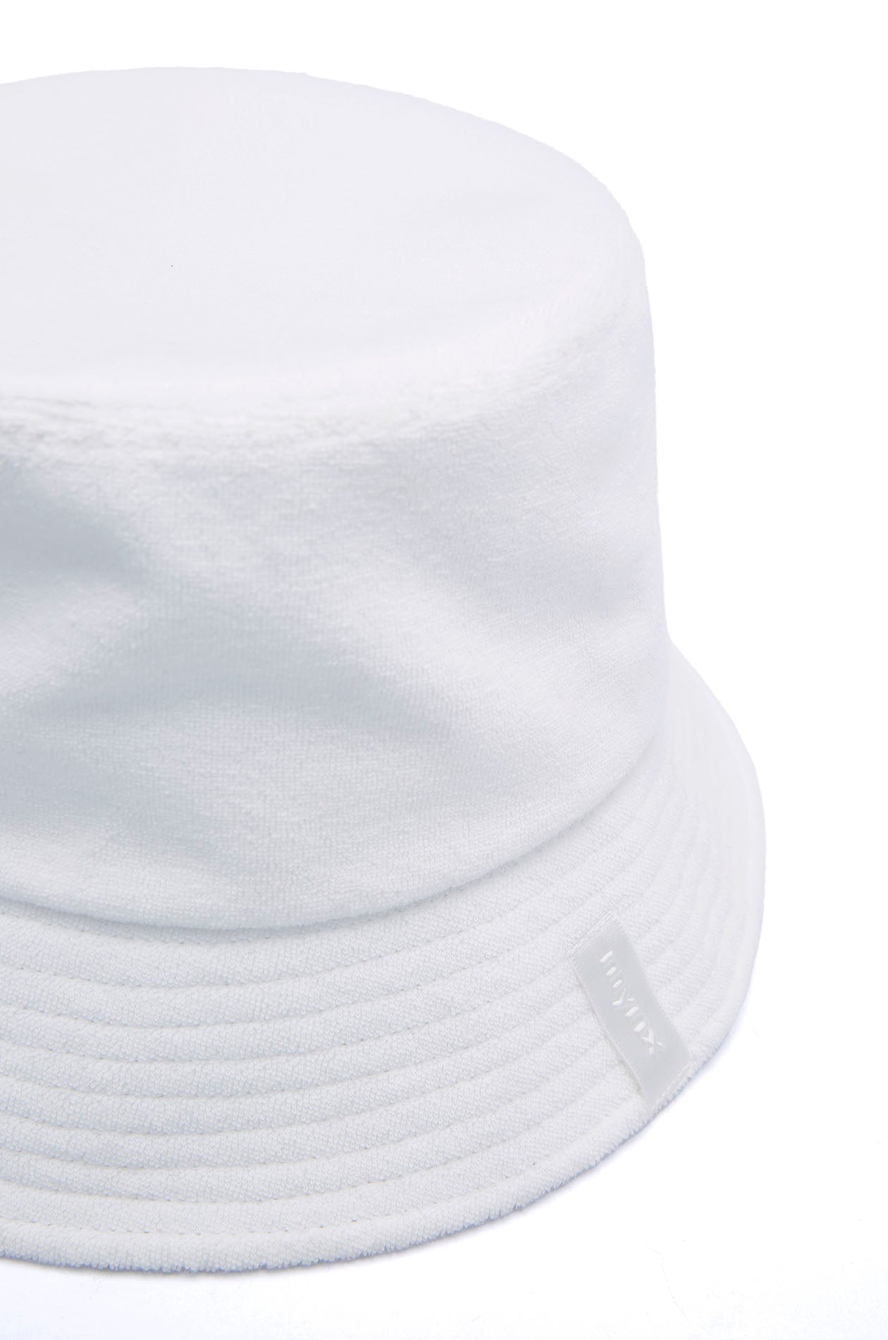 Bucket hat crafted from soft terry cloth, featuring a tonal logo tape. Available in white.