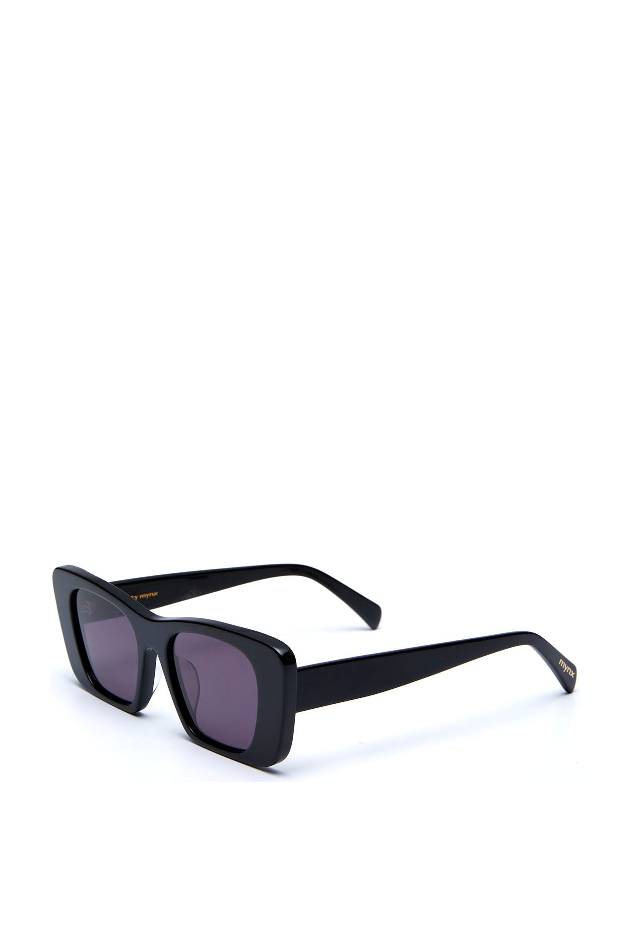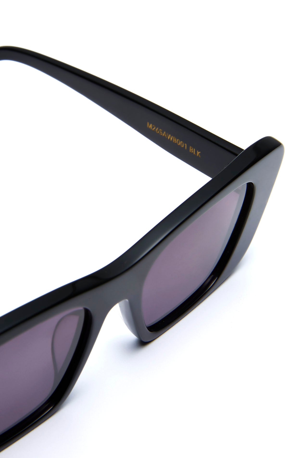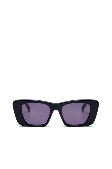 Square sunglasses in chunky acetate frame and temples. Available in black.