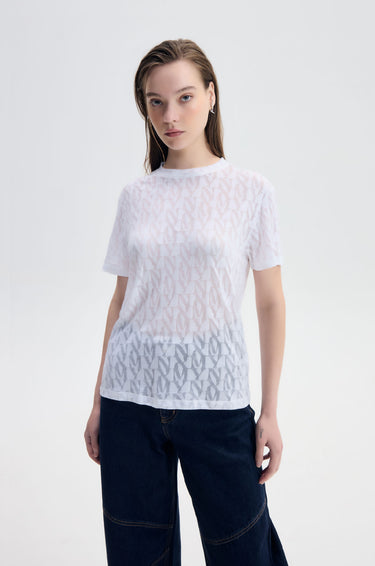 Short-sleeved T-shirt in jersey fabric. Regular fit with round neck and monogram burnout detail. Available in black and white.