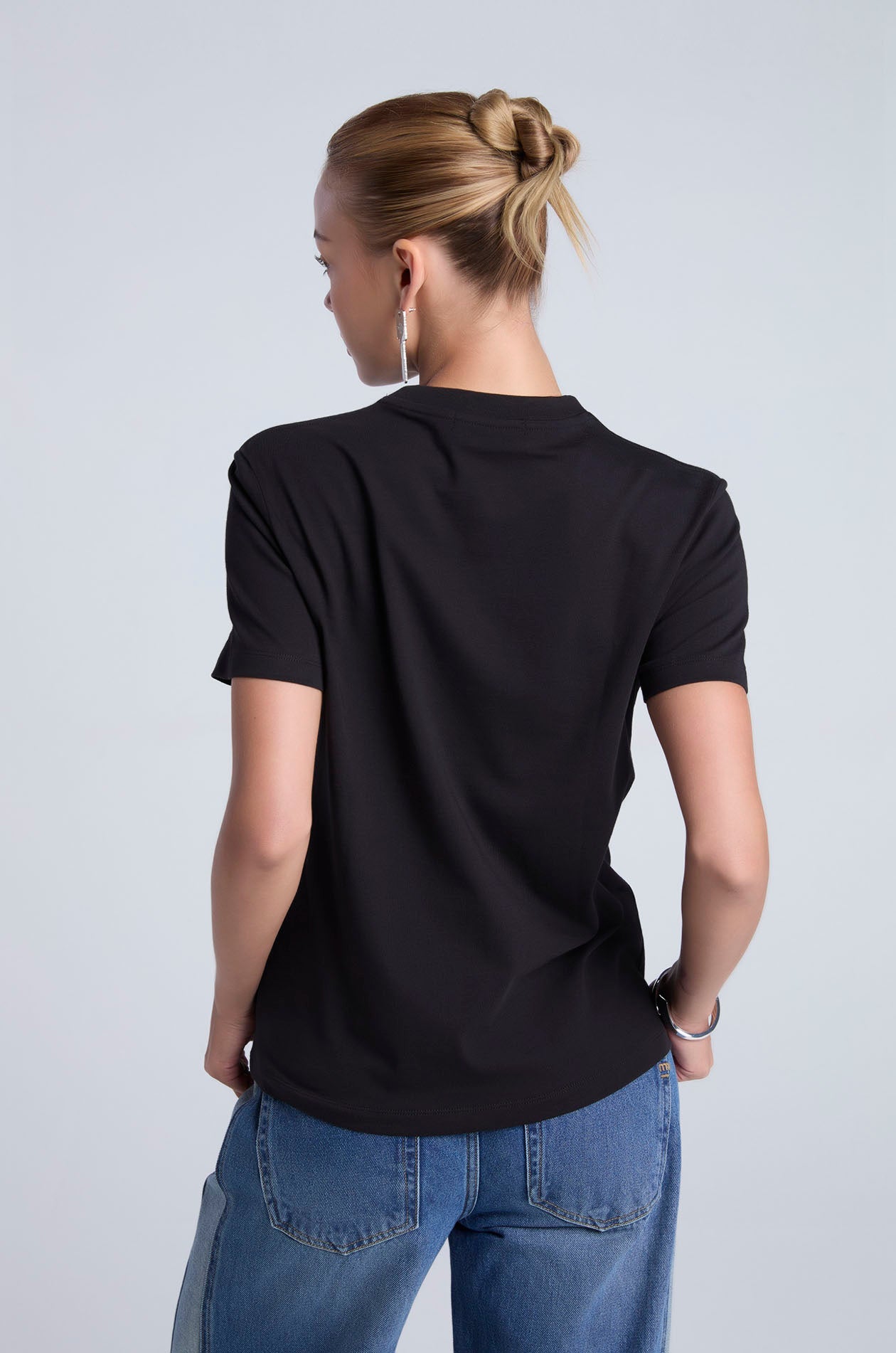 Short-sleeved T-shirt in jersey, crafted from cotton classic yarn. Regular fit with straight cut, round neckline, and slogan print at the front. Available in black and white.