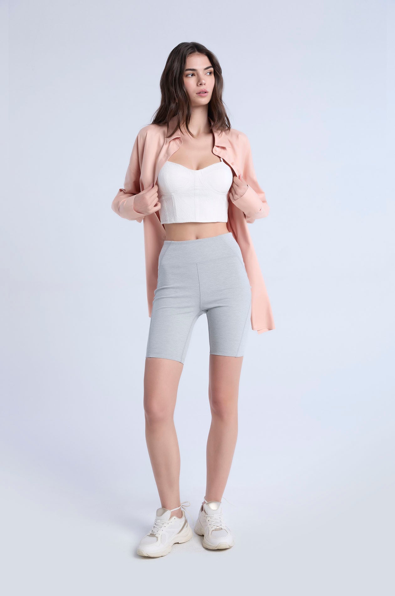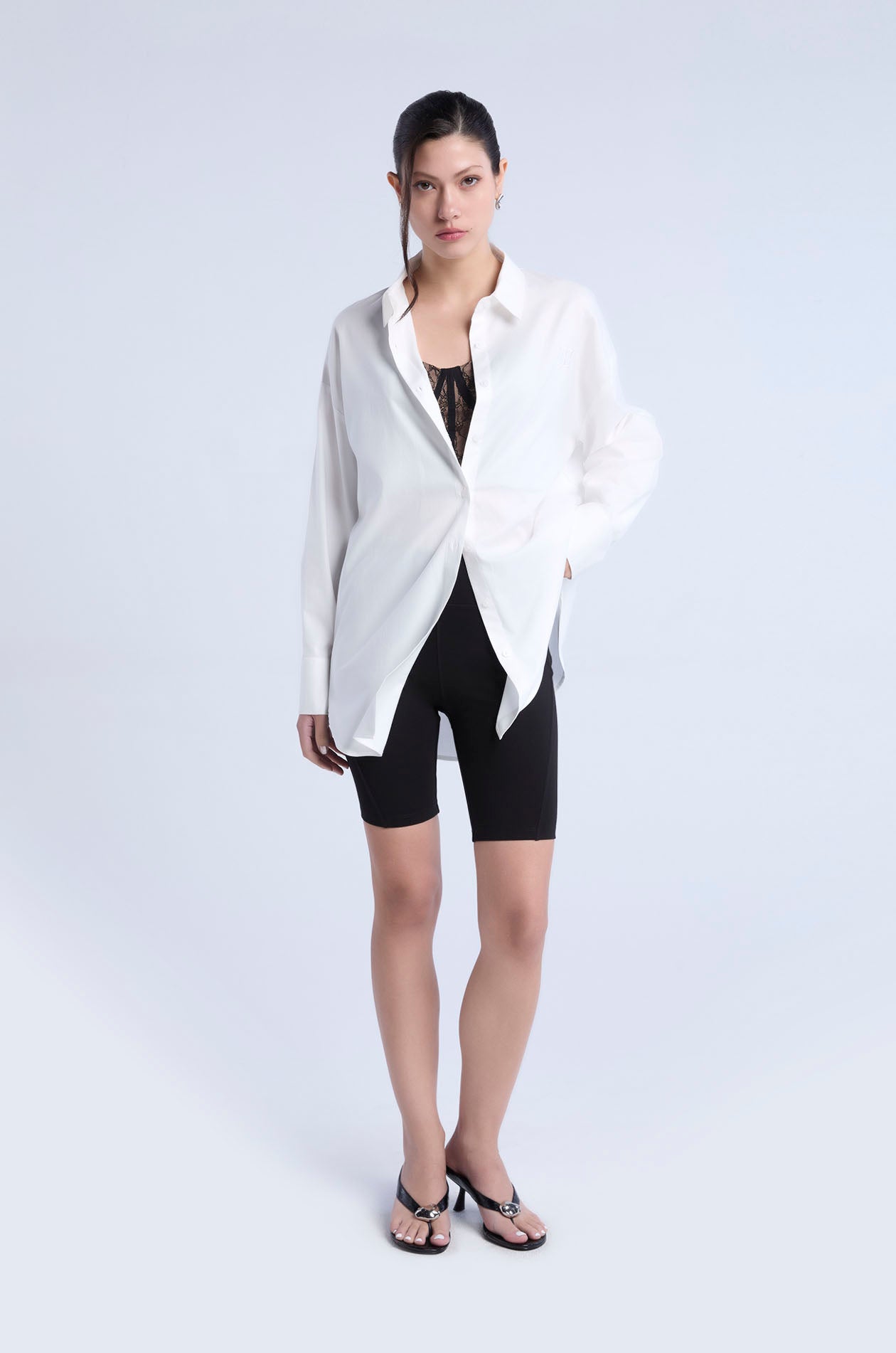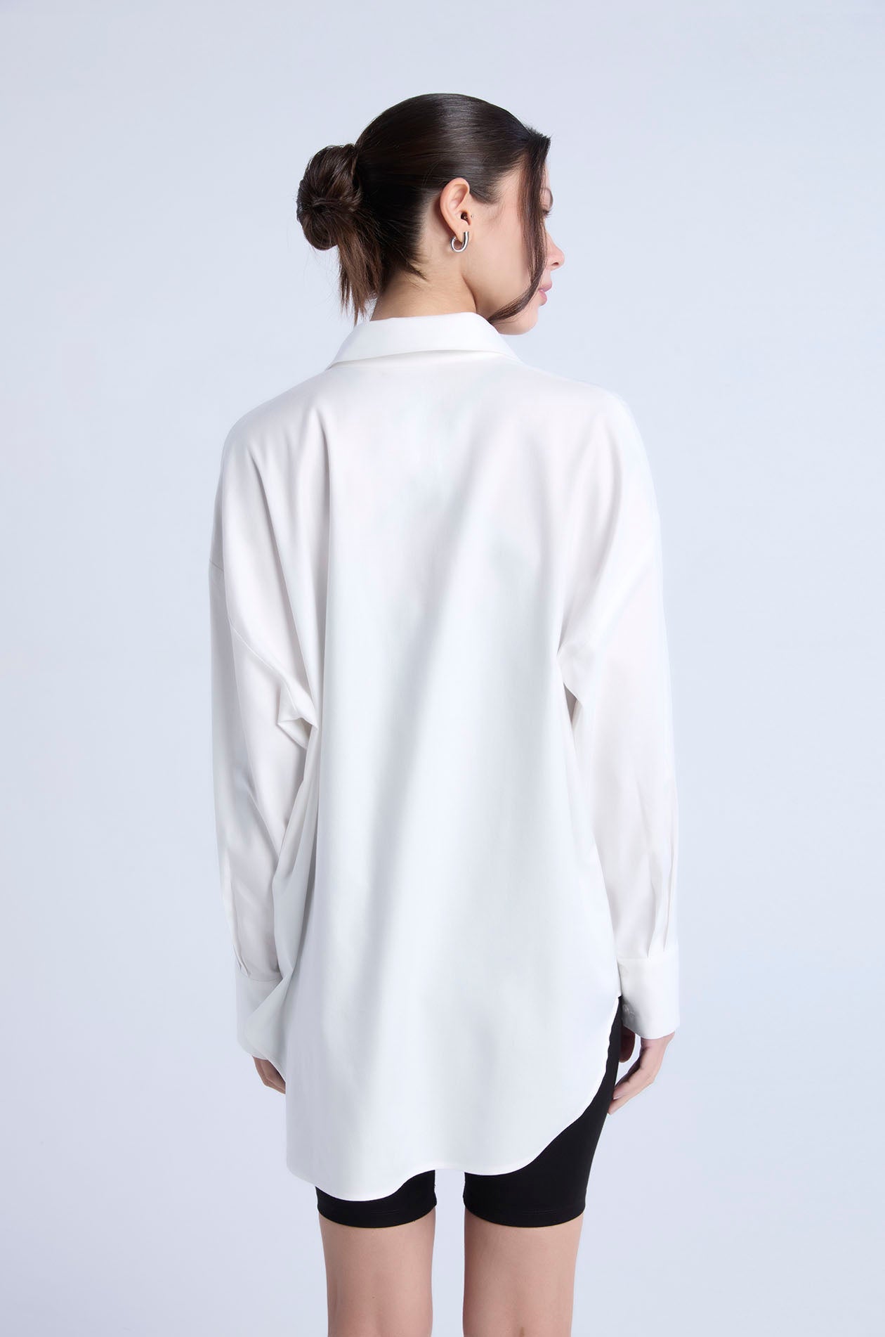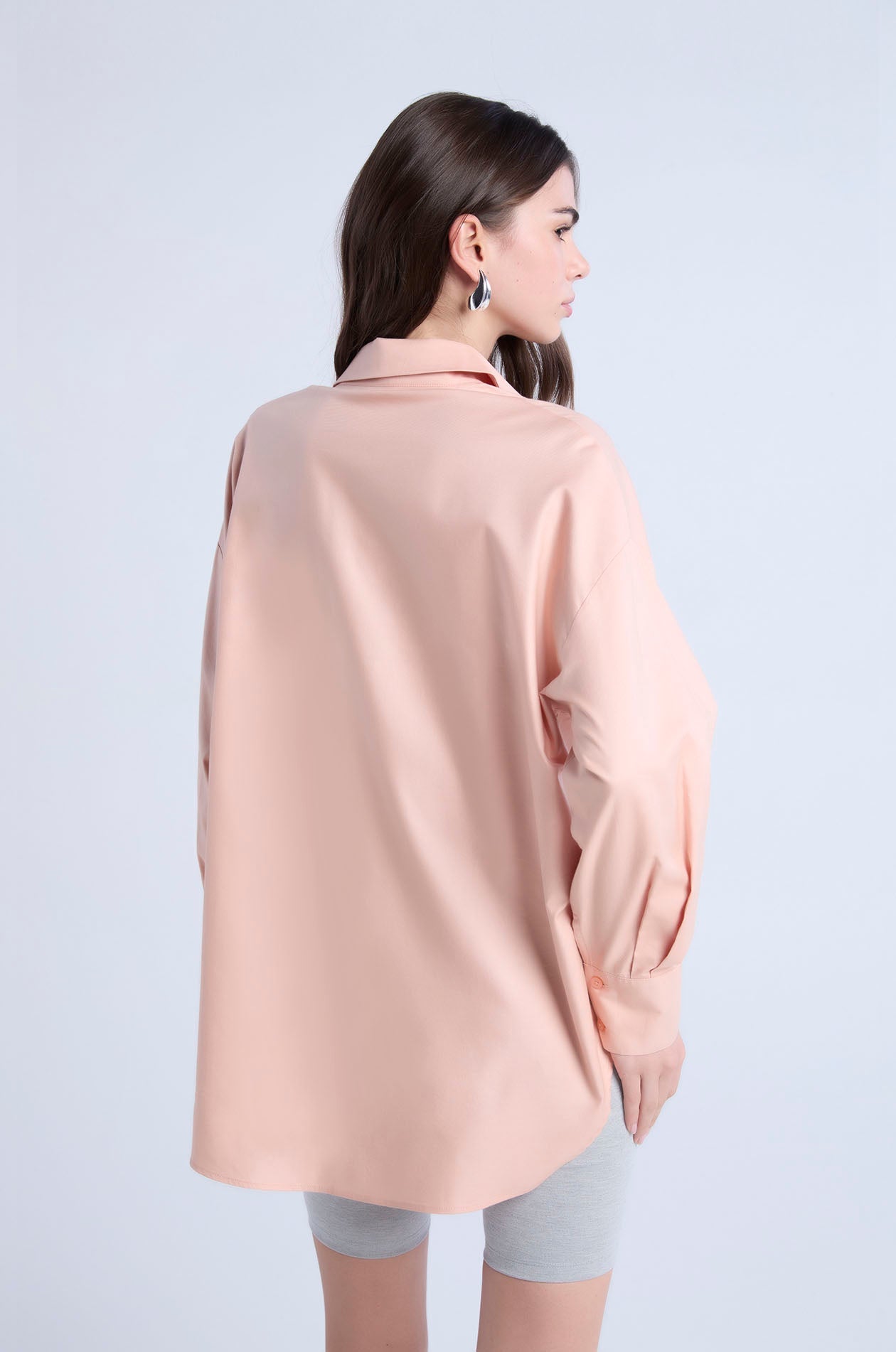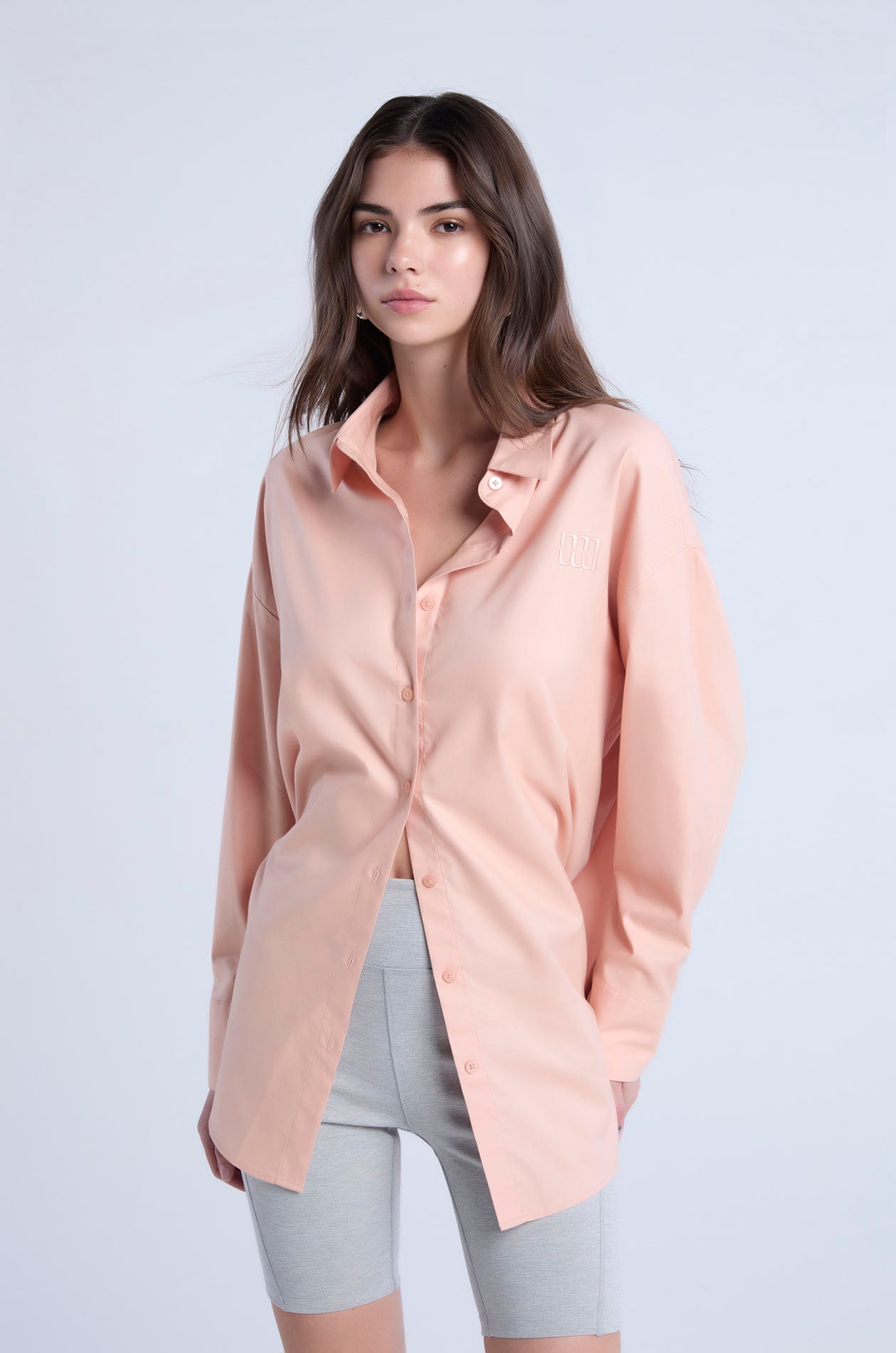 Long-sleeved shirt in cotton-blend poplin. Oversized fit with classic collar and monogram logo embroidery at the chest. Front button closure. Available in white and Peach Quartz.
