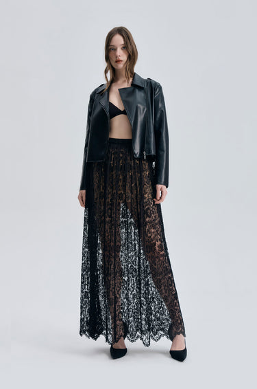 Plisse Lace Maxi Skirt