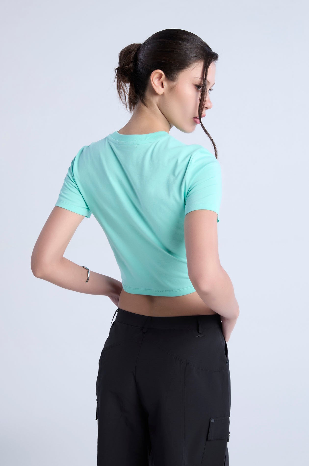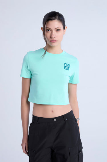 Short-sleeved T-shirt in jersey. Slim fit with round neck and monogram logo at the chest. Available in Ice Green, black, and white.